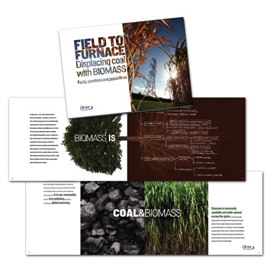 Brochure design for Drax, Britain's largest coal electricity generating company, on the benefits of co-firing biomass with the evil rocks. Unicycle handled design, writing and infographics to tell this technical and relevant story.